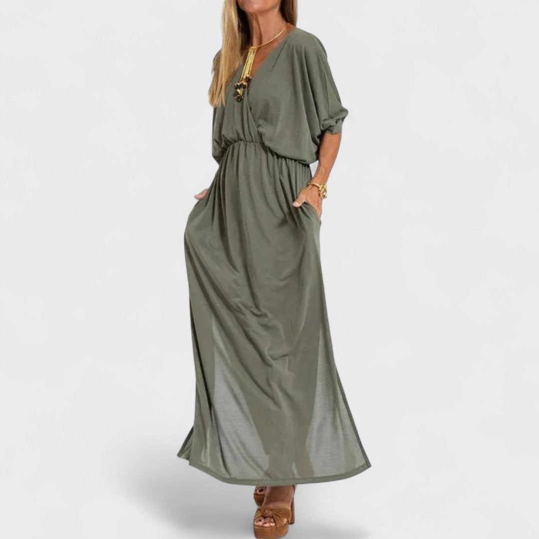 Lani è l’abito che unisce eleganza rilassata e comfort quotidiano. Con il suo taglio morbido e la linea fluida, è perfetto per accompagnarti in qualsiasi occasione, dalle giornate casual alle serate estive.