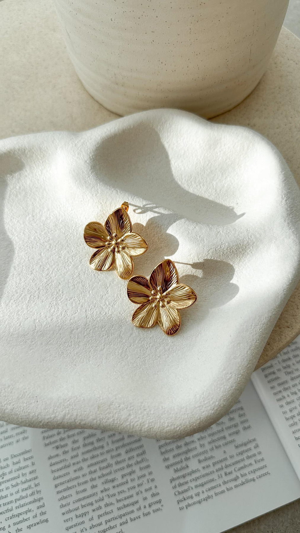 Eleva la tua collezione di gioielli con gli Orecchini a Fiore Placcati in Oro Lexi – un delicato mix di texture ed eleganza. Questi orecchini floreali aggiungono un tocco sottile ma sorprendente a qualsiasi outfit, rendendoli ideali sia per l'abbigliamento quotidiano che per occasioni speciali. Con il loro design senza tempo, offrono un modo semplice per migliorare il tuo stile personale.