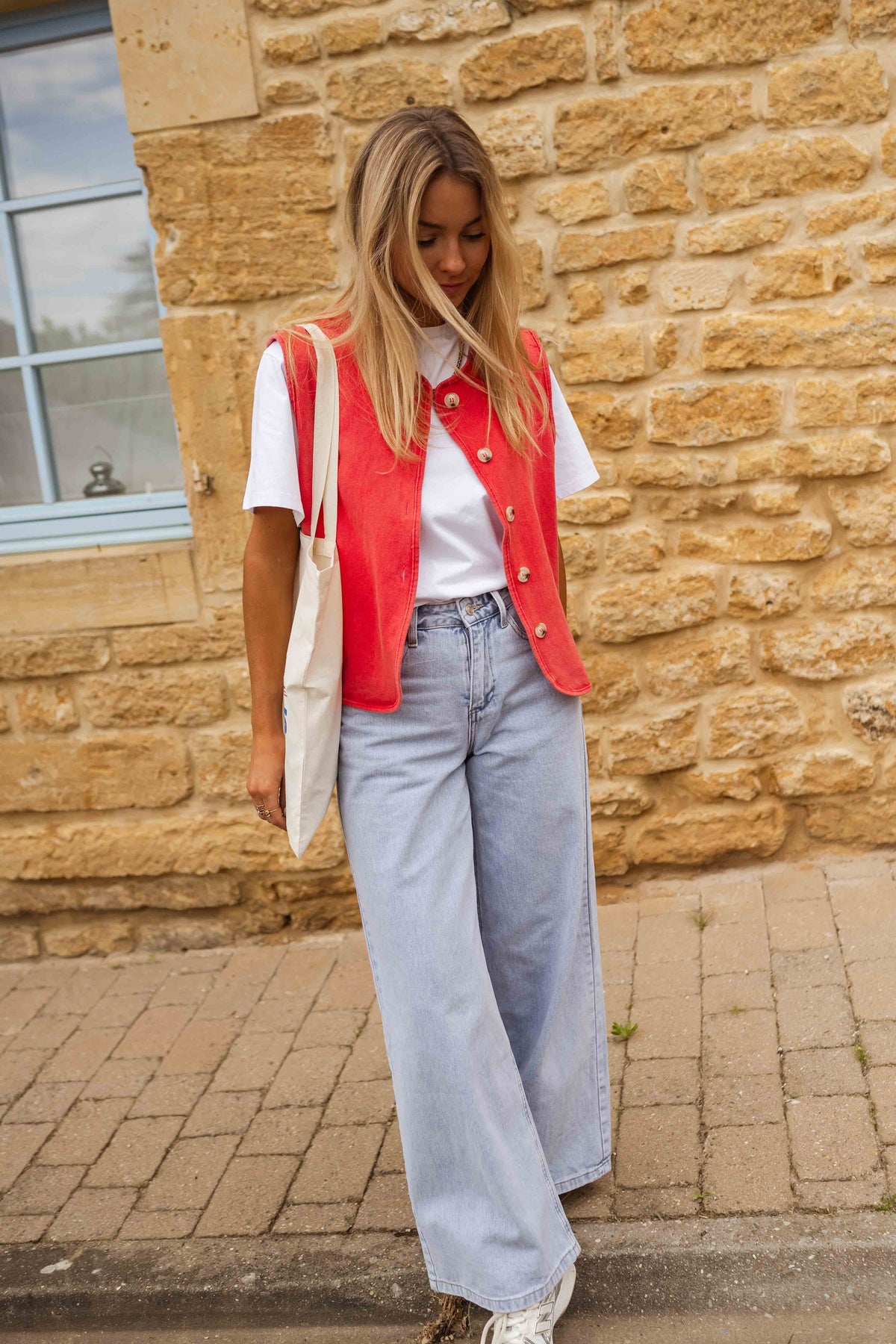 Il Gilet Carla porta un tocco di vivacità alla tua estate con il suo colore deciso e la finitura effetto vissuto. Un capo versatile dal taglio rilassato, perfetto da sovrapporre a t-shirt o top leggeri – ideale dalla primavera all’autunno.
